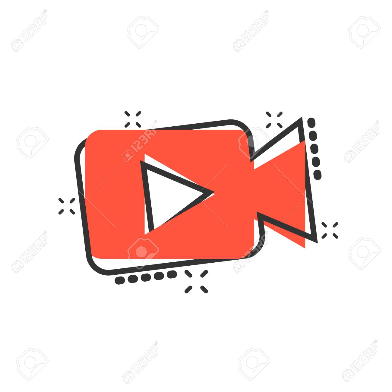 Video Camera Icon In Comic Style Movie Play Vector Cartoon