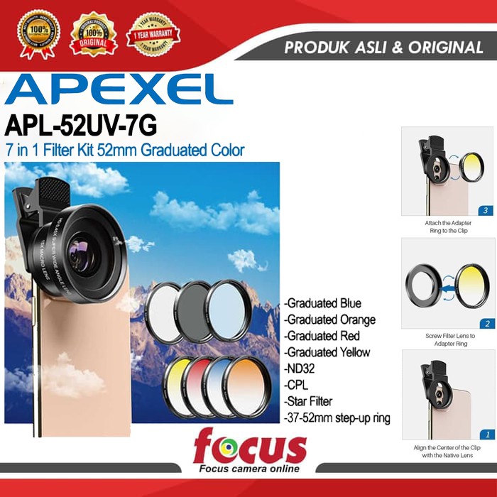 Apexel Apl 52uv 7g 7 In 1 Filter Kit 52mm Graduated Color Shopee